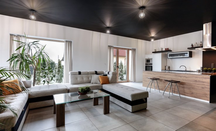 Dom jest umeblowany i posiada nowoczesne, energooszczędne ogrzewanie podłogowe we wszystkich pomieszczeniach. Został wybudowany w 2021 roku., Nowoczesna bryła i funkcjonalny układ wnętrza.