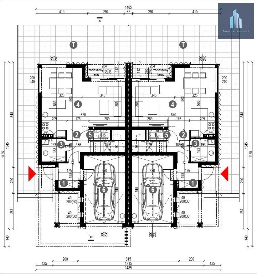 - Powierzchnia działki ok 450 m2 dla każdego lokalu