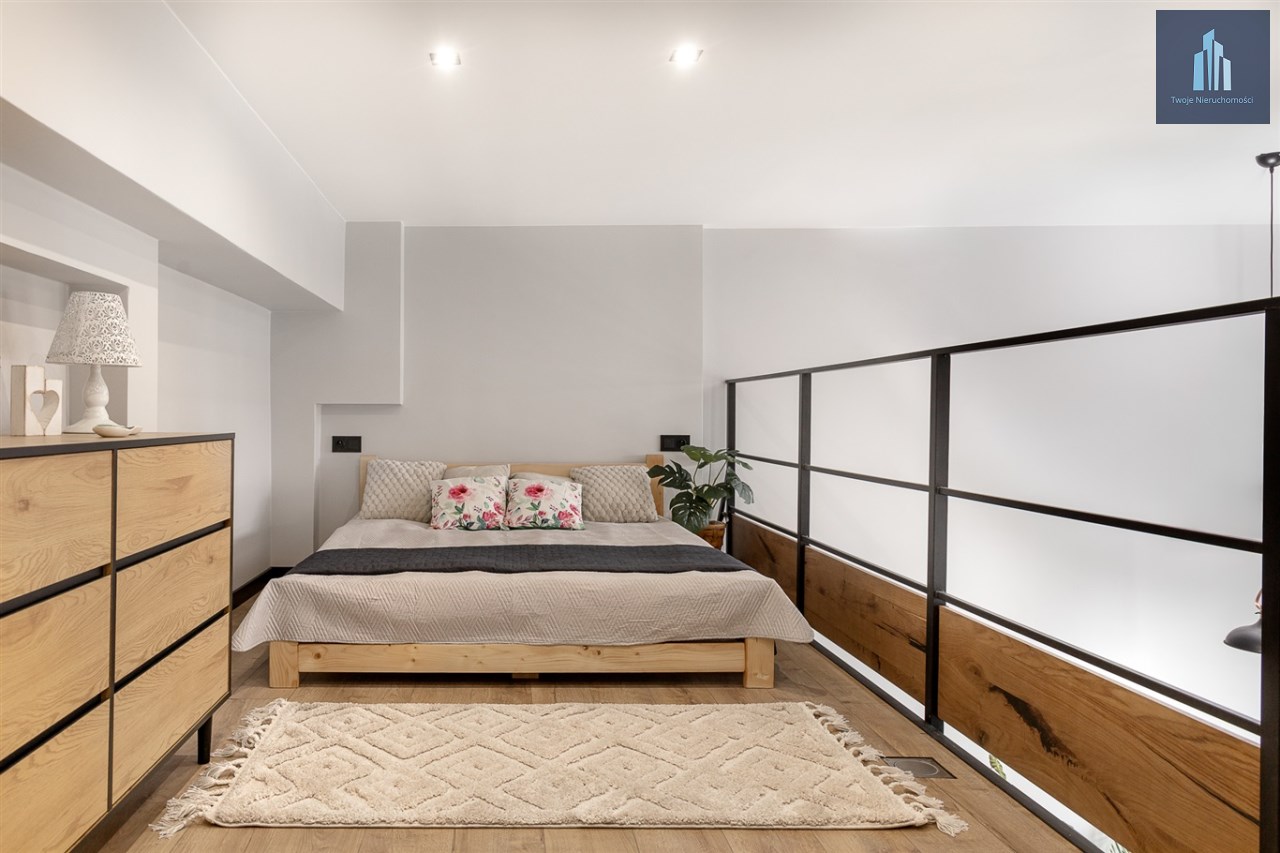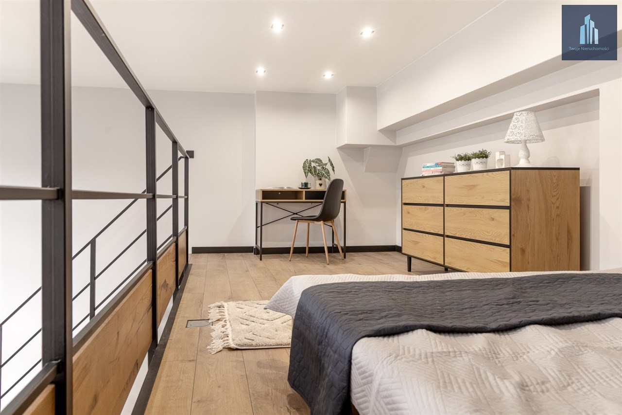 Dzięki antresoli zyskujesz dodatkową przestrzeń sypialnianą i biurową bez powiększania metrażu (wys. 195 cm).