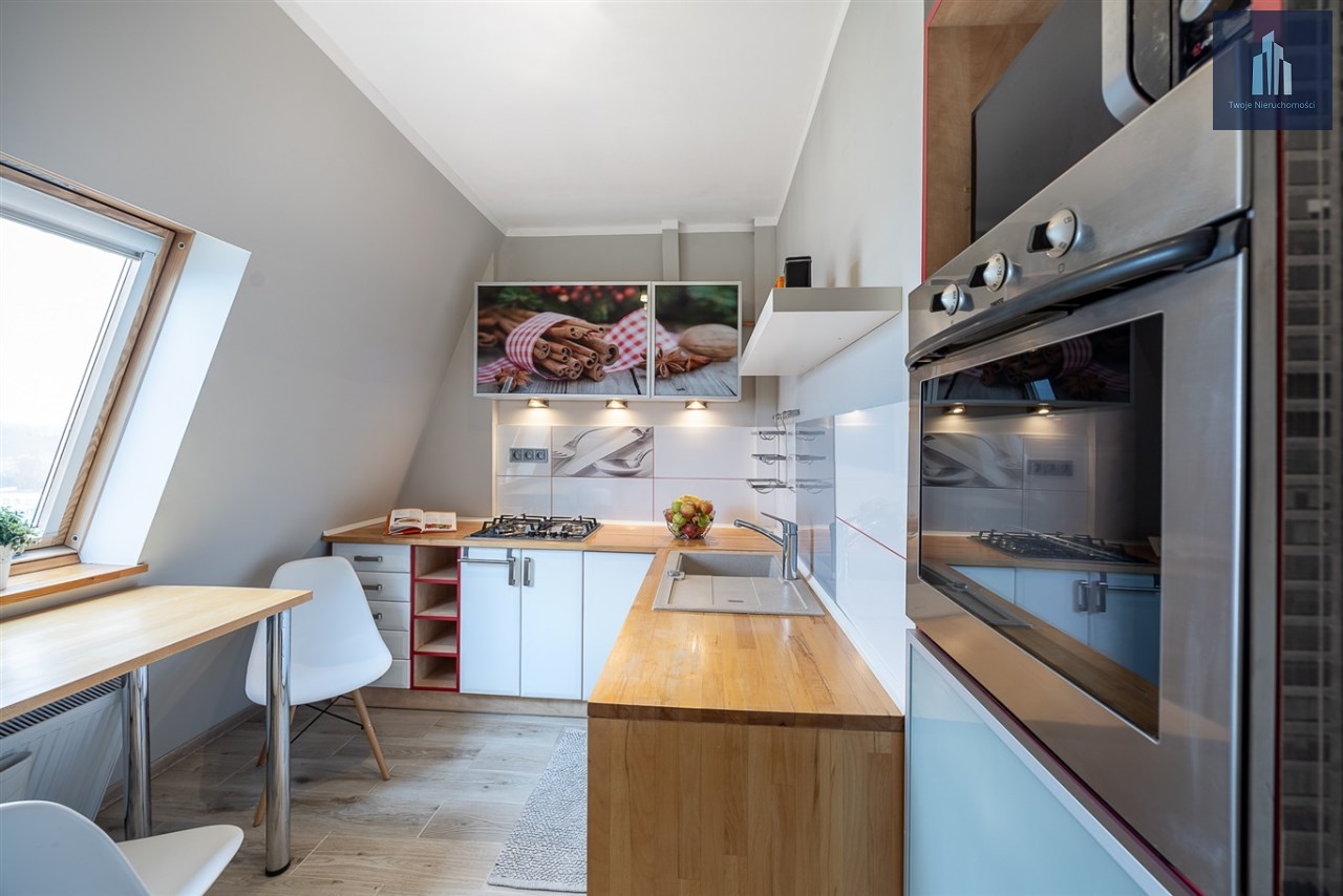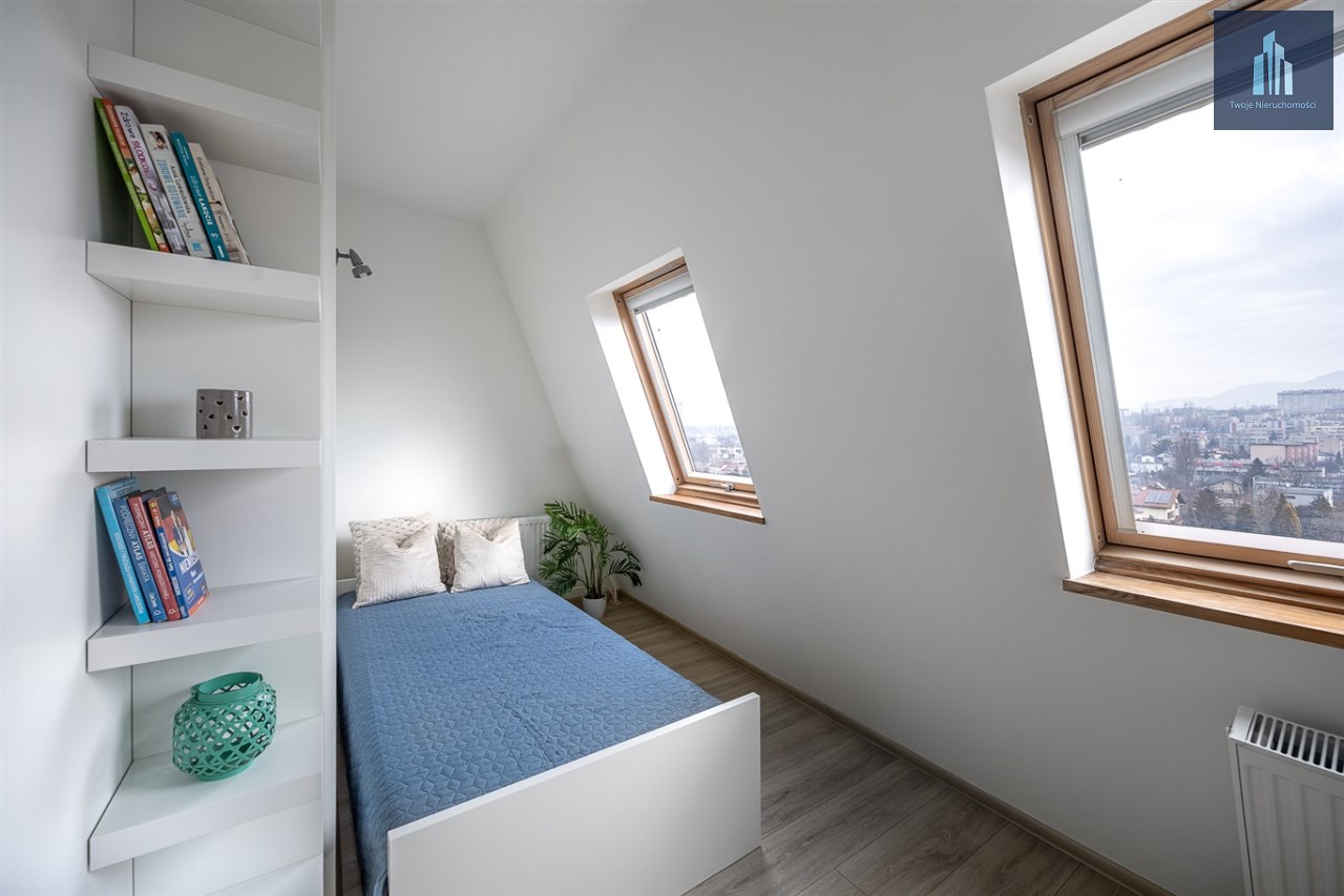 Lokal jest dwustronny, funkcjonalny i bardzo dobrze doświetlony, gotowy do zamieszkania bez konieczności ponoszenia dodatkowych nakładów finansowych. Z balkonu rozciąga się piękny widok na panoramę miasta i góry.