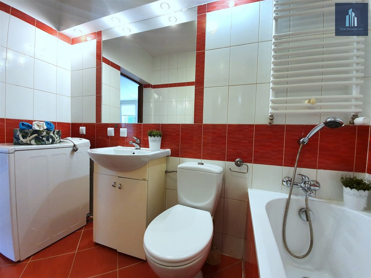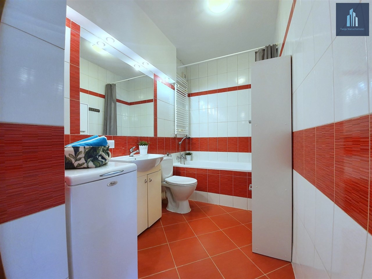 - w sypialni łóżko i pojemna szafa w zabudowie - w łazience pralka
