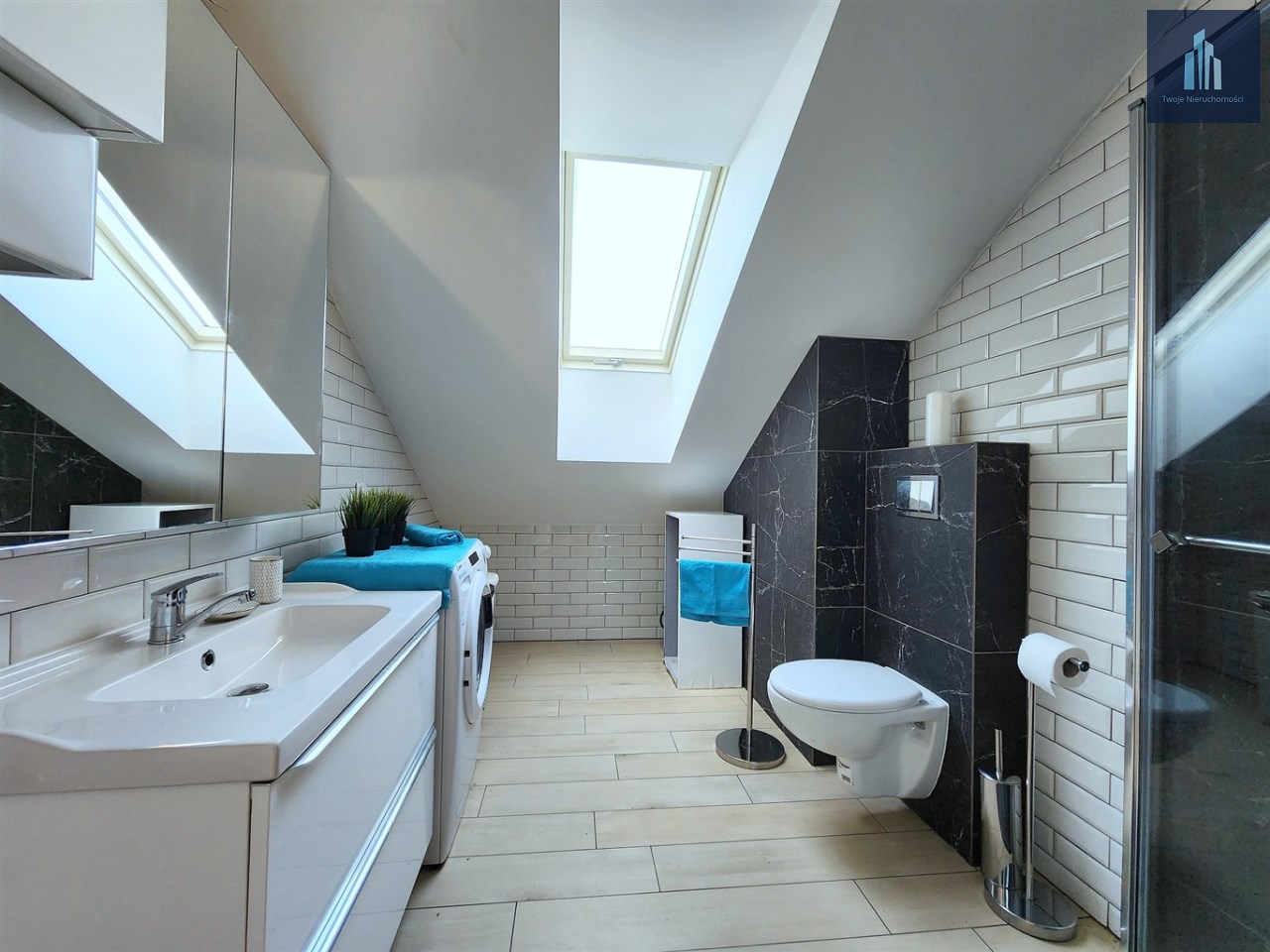 - Łazienka w pełni wyposażona - pralka, kabina prysznicowa, pojemnik na pranie