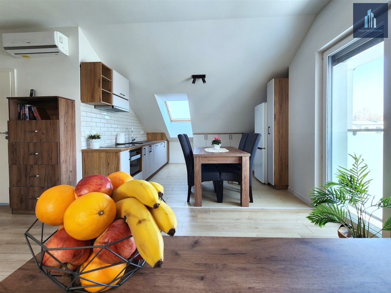 - Kuchnia umeblowana wraz z lodówką, zmywarką, kuchenką, okapem oraz koszami cargo
