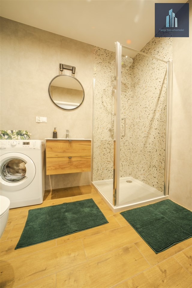 Dużym atutem jest również osobne wejście z własną klatką schodową, co daje poczucie prywatności zbliżone do mieszkania w domu.